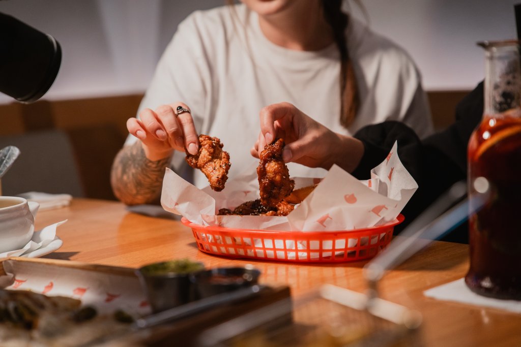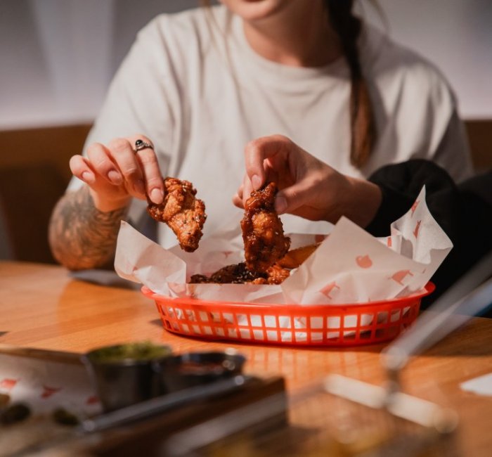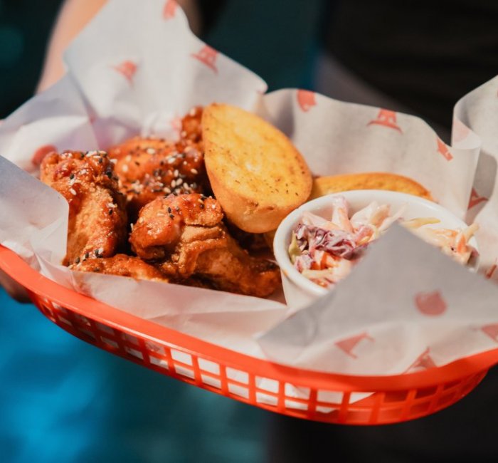 | 8ks | KŘÍDLAsmažená kuřecí křídla v křupavém těstíčku obalená v BBQ marinádě, zakysaná česneková smetana, zeleninové hranolky z mrkve a řapíkatého celeru, rozpečený chléb |