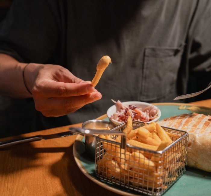 | 80g | OMÁČKYPepřová omáčkaTatarka Česnekový dip Rajčatová salsa Guacamole BBQ omáčka Teryiaki omáčka |